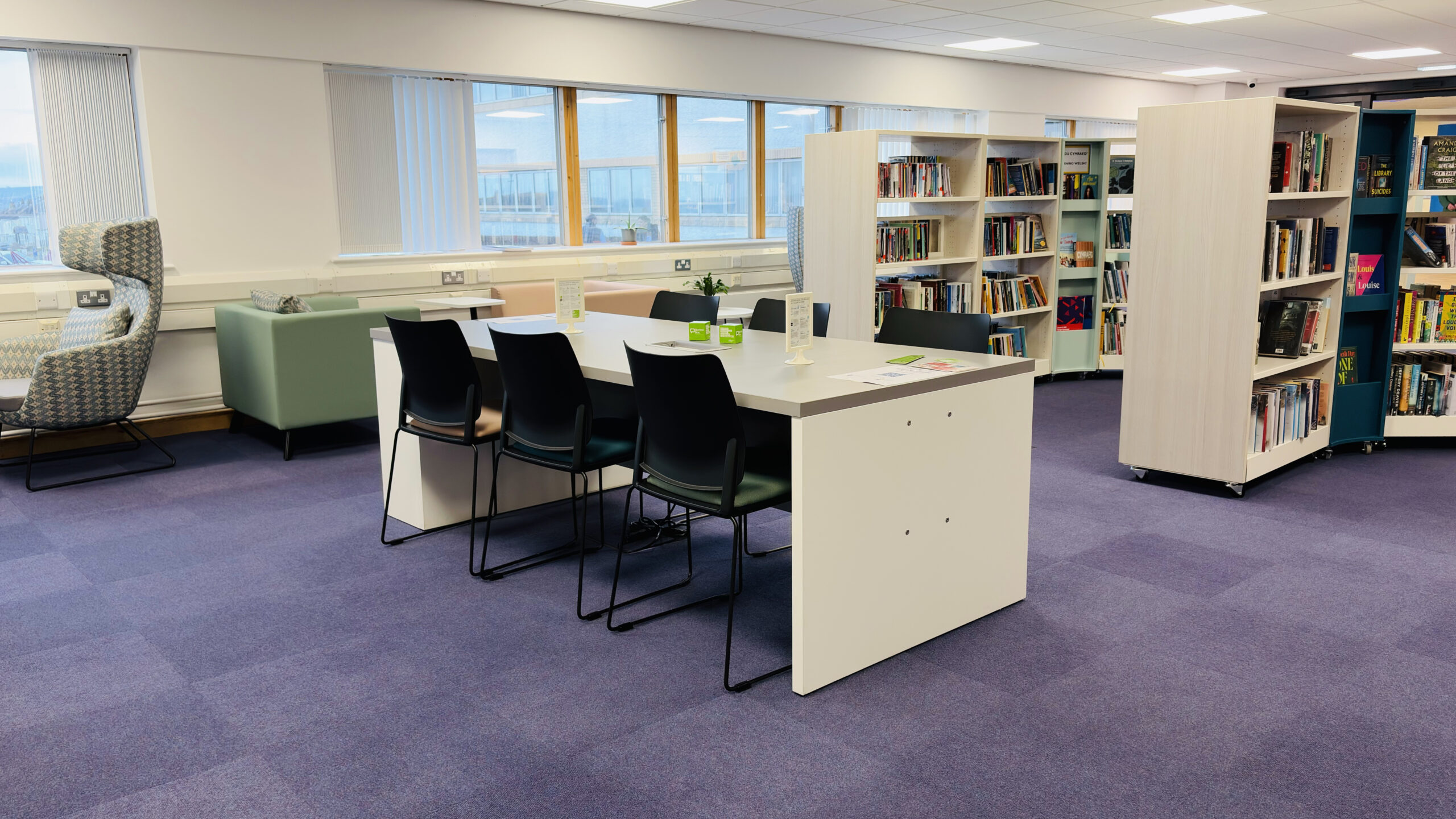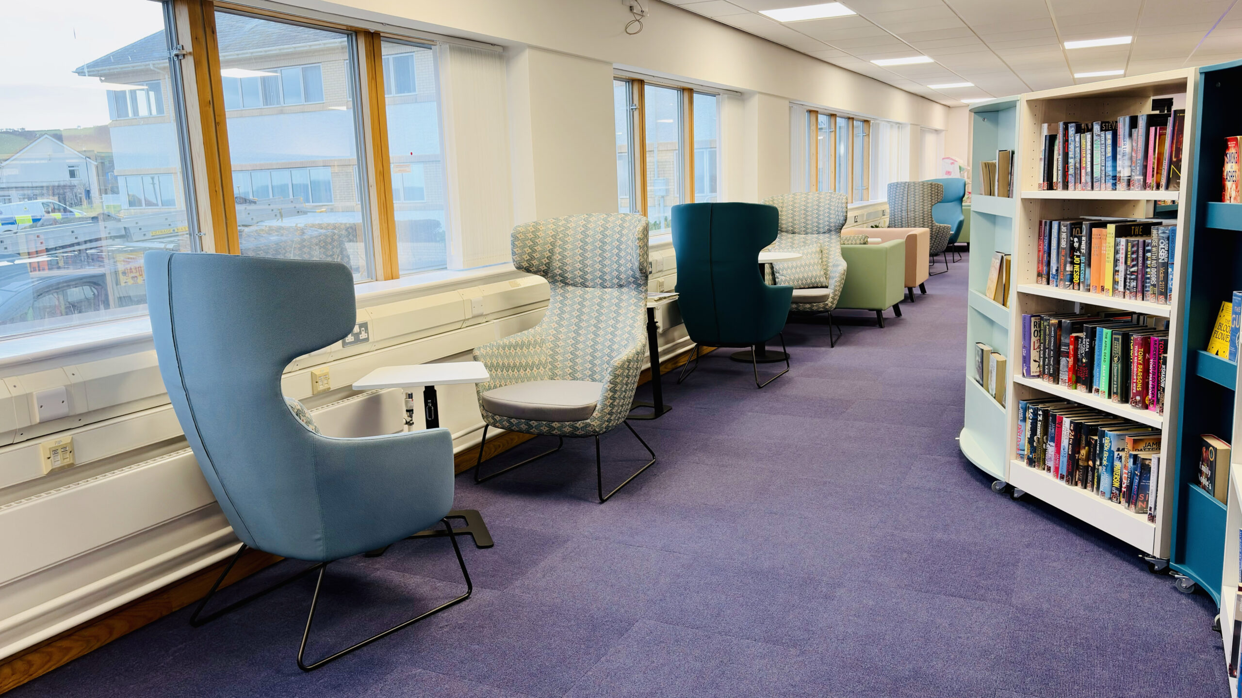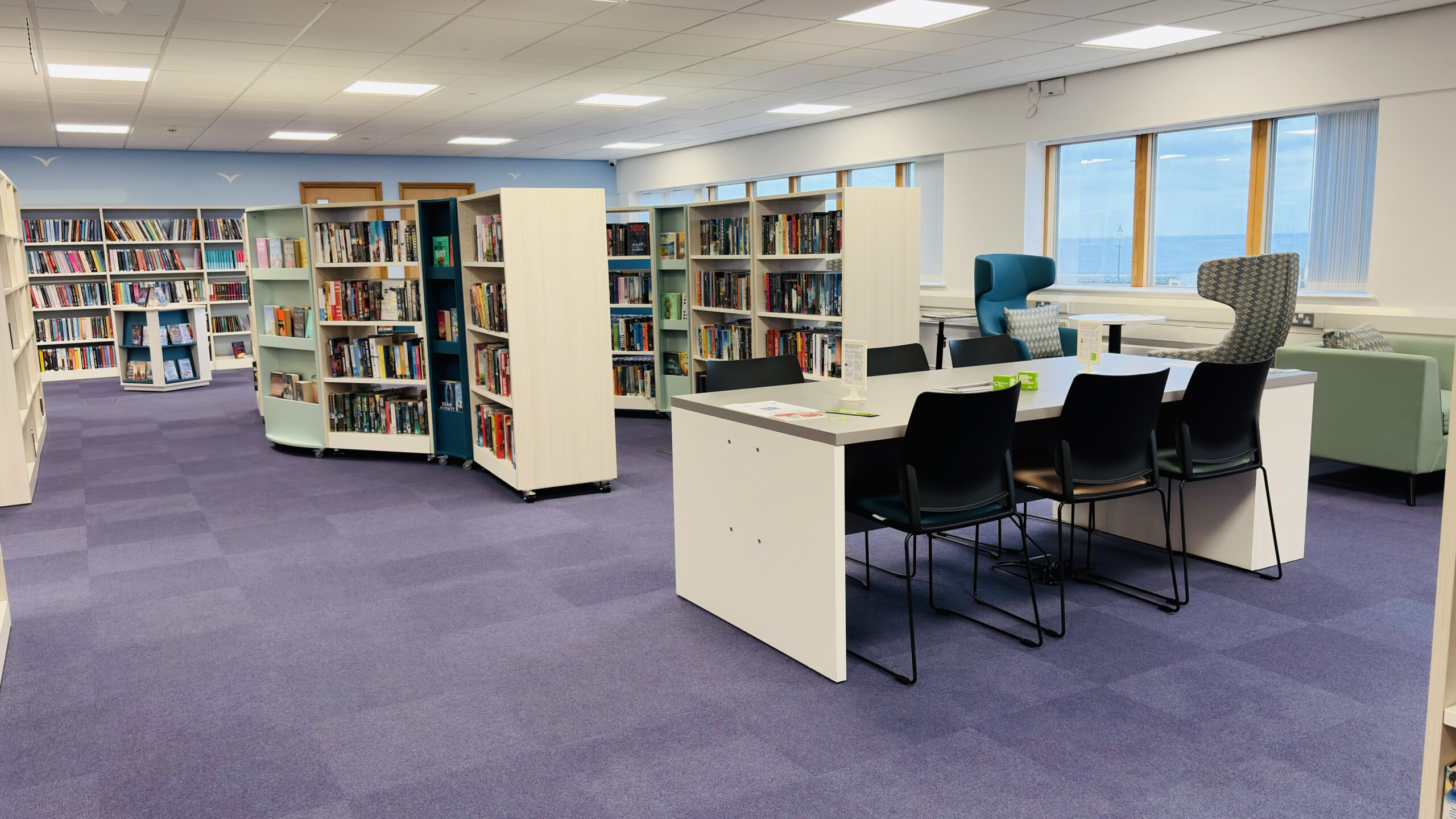 One of the standout features of the new library is the beach‑hut‑themed children’s area, a playful nod to the colourful architectural style found throughout the town. The back wall features bespoke coastal‑themed graphics, creating an immersive environment that sparks curiosity and imagination.