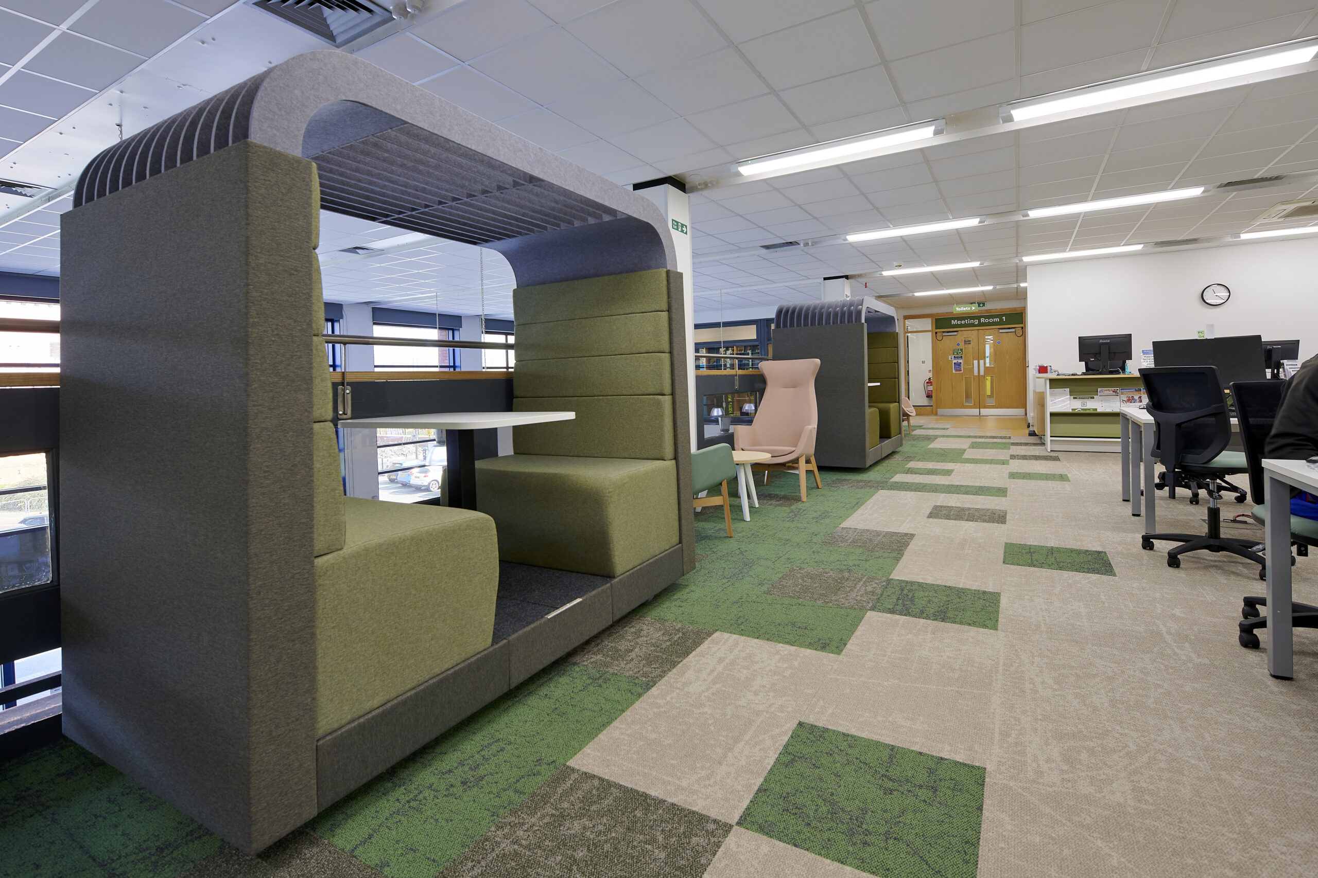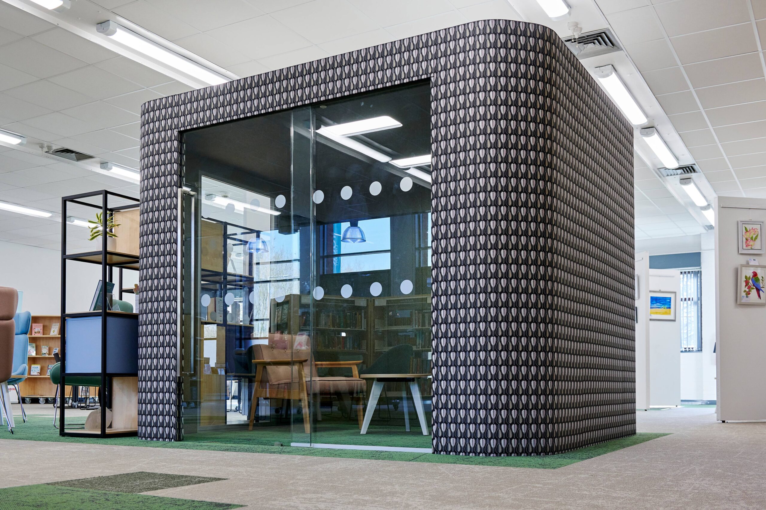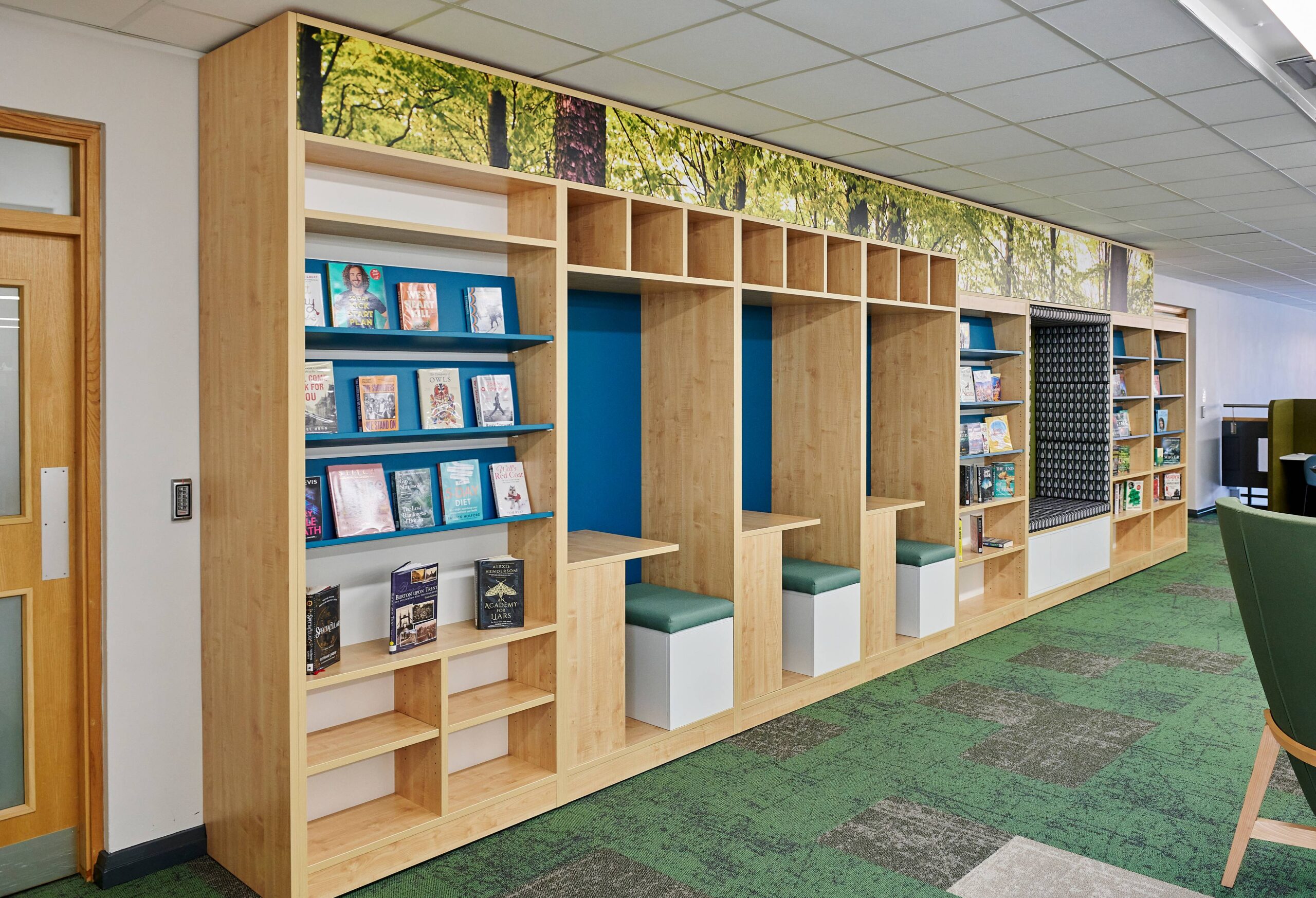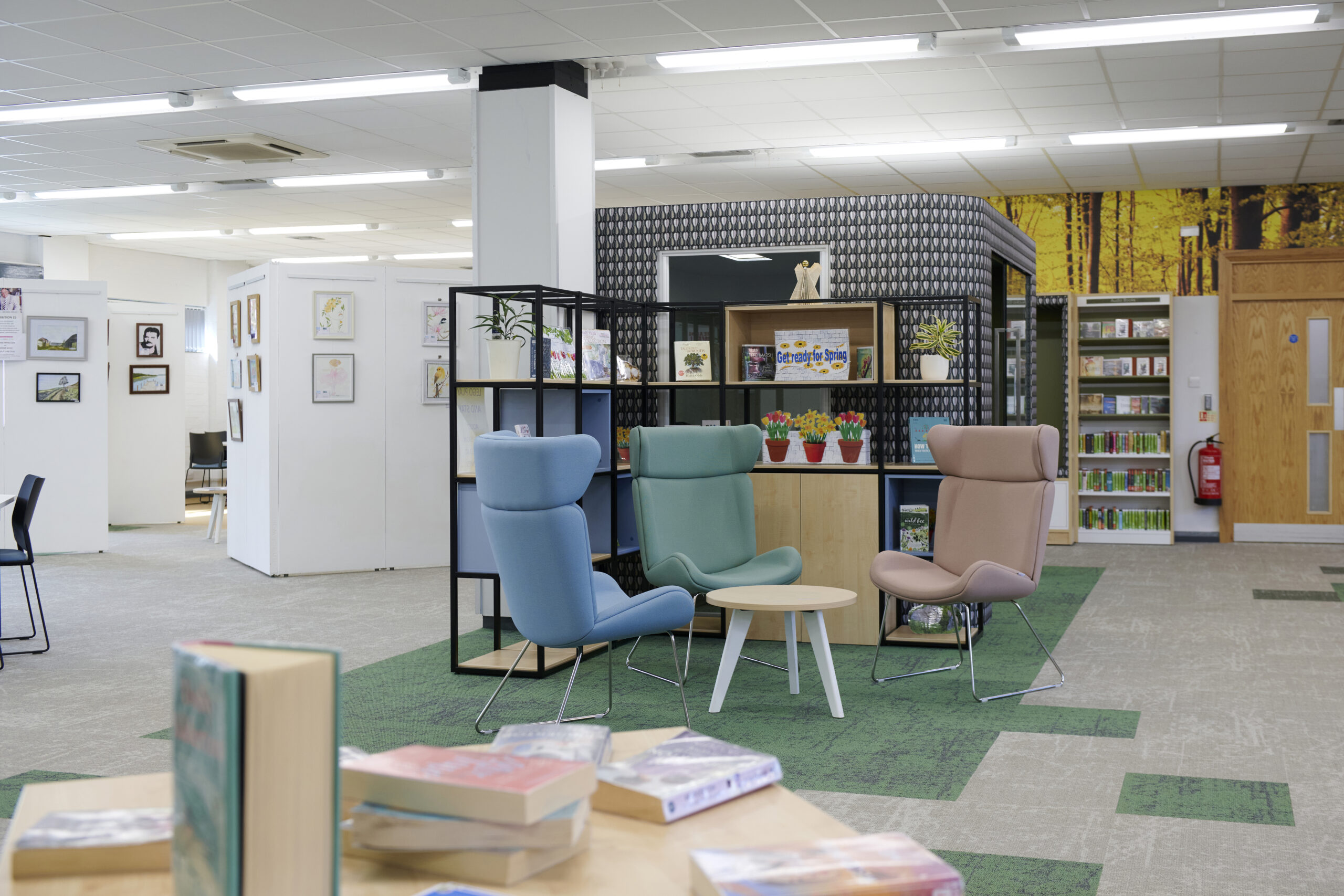 - The new layout enhances flow and visibility, with open sightlines guiding users to key areas including study zones, flexible seating, and a reimagined children’s library. The relocated children’s area now sits at the front of the building, framed by a playful tree archway and overlooking the Washlands nature reserve. It includes our StoryWall® island, woodland-themed graphics, and a dedicated sensory zone for neurodivergent children and those with additional needs.