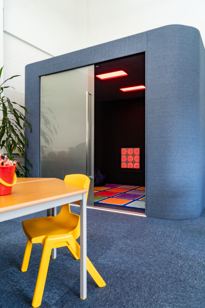 As part of the library’s evolving role within the community, a dedicated Health Hub has been introduced to support wellbeing services. The space has been designed with flexibility in mind, using finned acoustic screens that allow it to be opened up or enclosed depending on use. This ensures privacy for consultations while maintaining a sense of openness when required. Comfortable seating and carefully considered layouts create a calm, supportive environment for informal appointments, health checks, and community wellbeing initiatives.