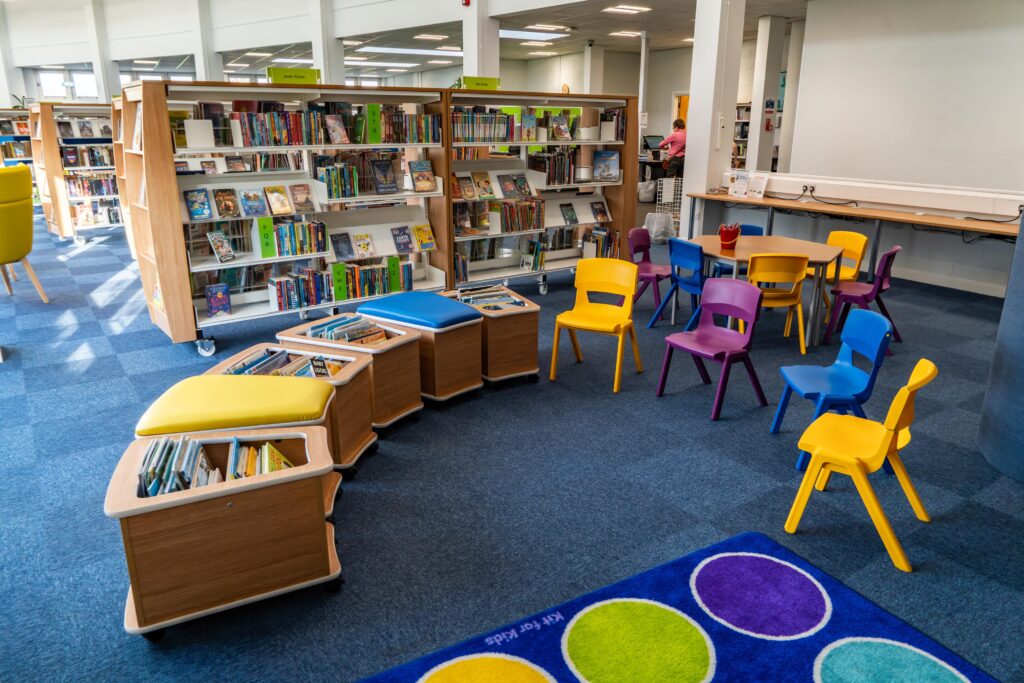 Relocated to the rear of the building, the children’s library has been designed as an engaging and imaginative environment that reflects its seaside context. A bespoke boat feature forms the centrepiece of the space, creating a sense of play and discovery for young visitors. This is complemented by a custom Storywall with integrated sensory elements, encouraging interaction and supporting early learning. The overall design fosters creativity and exploration while providing a safe and inviting setting for children and families.